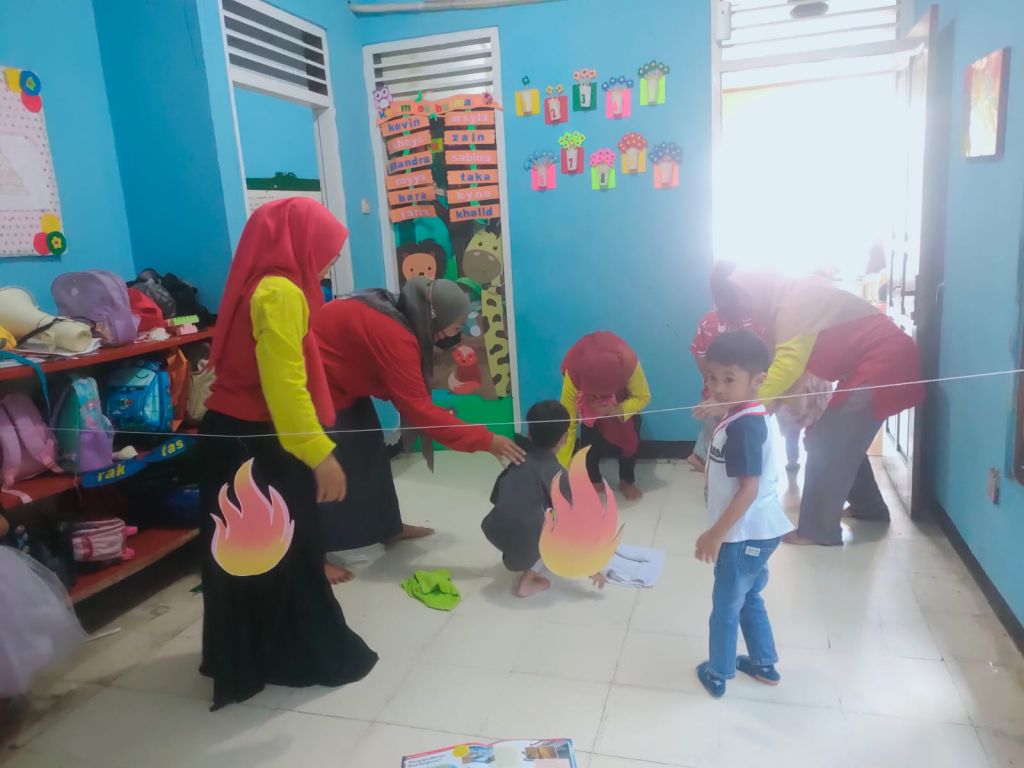 4. Anak – anak diberi pemahaman jika ada bencana kebakaran harus tenang jangan panik