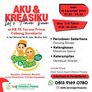 FREE TRIAL CLASS untuk Anak Usia 2-5 Tahun di KB TK Taruna Prima
